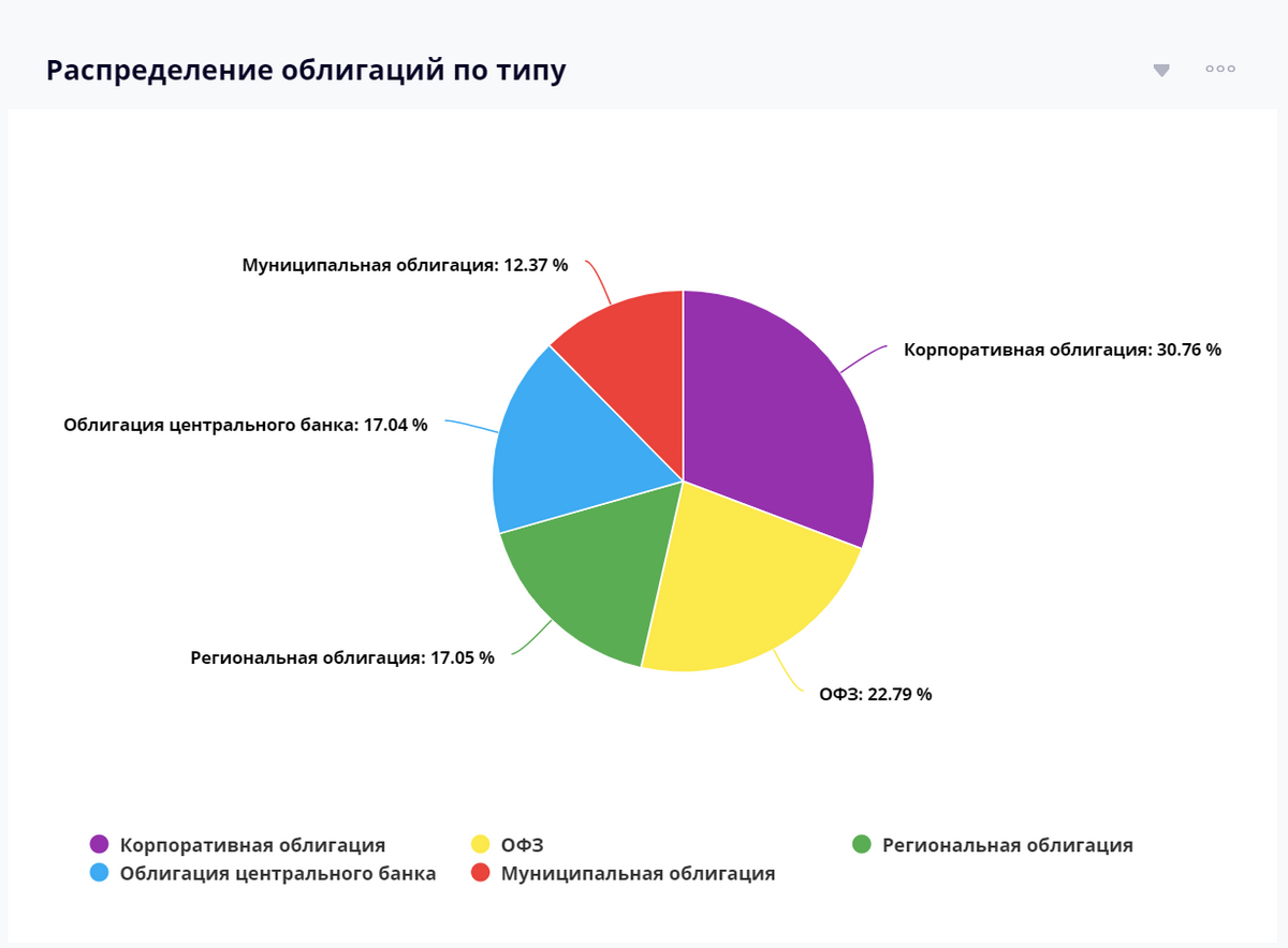Портфельдиаграмму распределения облигаций по типу (ОФЗ, муниципальные, региональные, корпоративные и т.д)