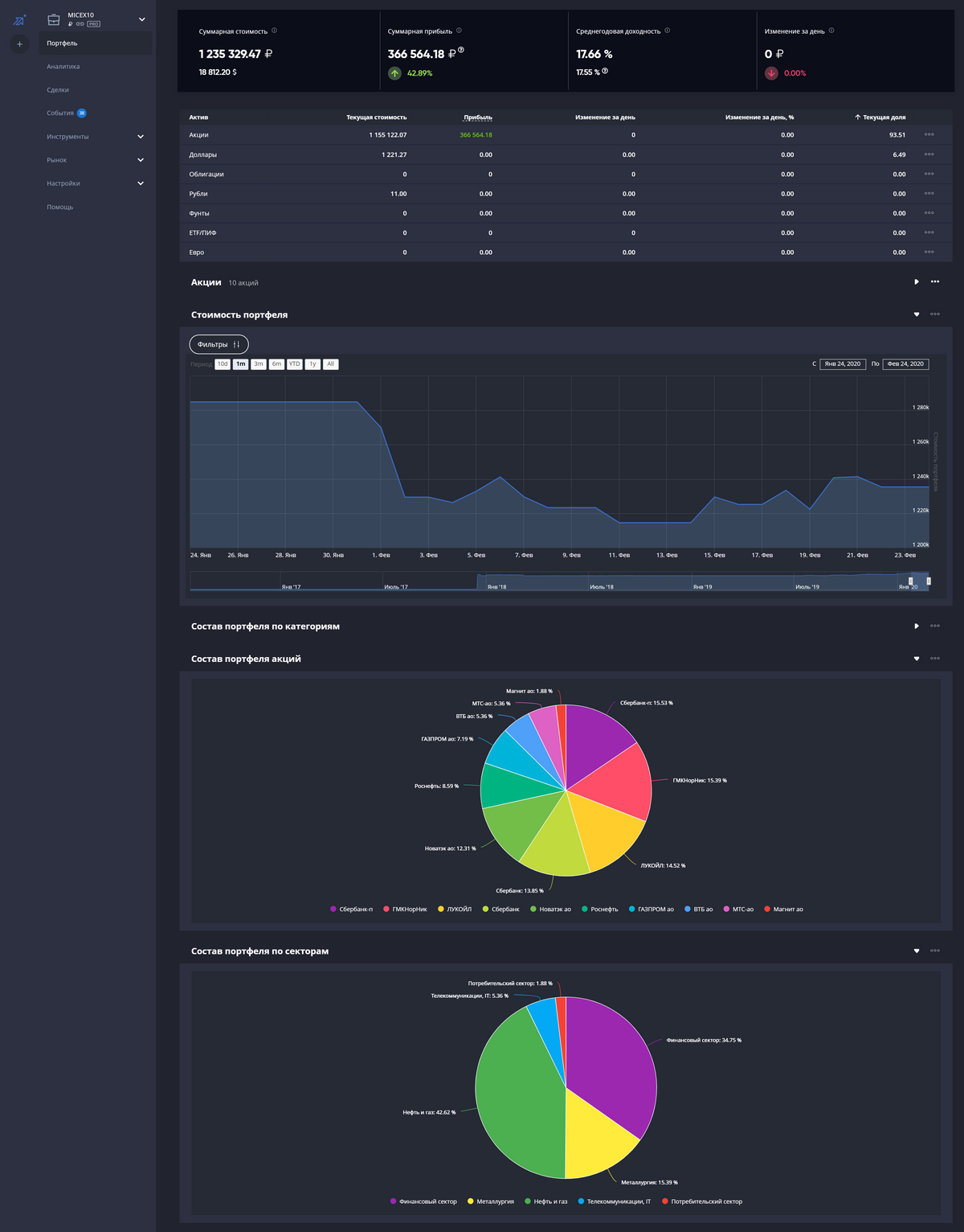 Загрузите всего два отчета и вся история по портфелю будет в сервисе.