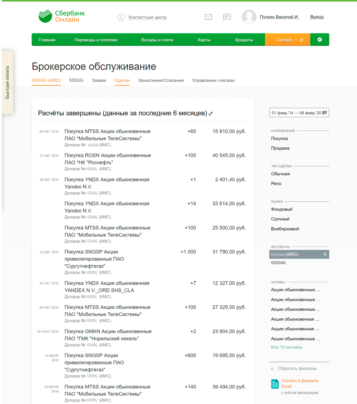 Полностью обновили импорт отчетов Сбербанка.