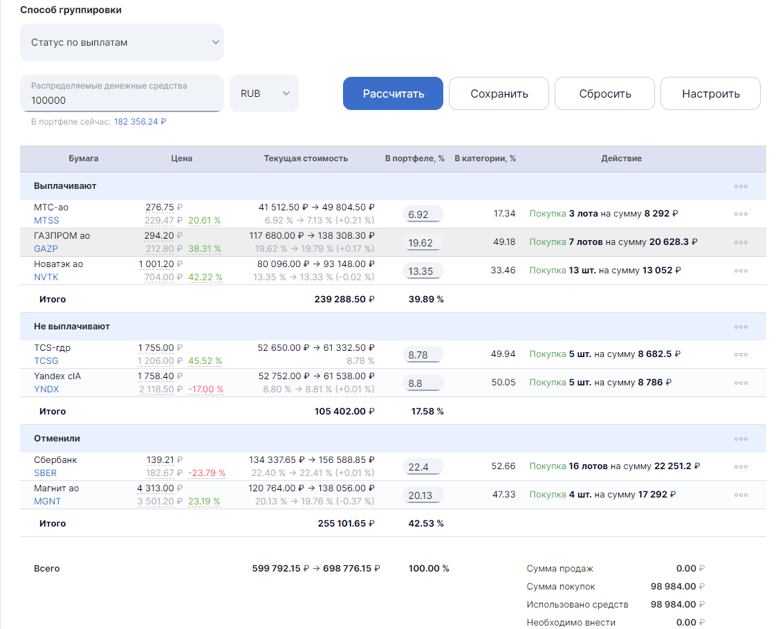 Новый инструмент «Ребалансировка» поможет быстро привести портфель в порядок, и даст список сделок, которые необходимо совершить.