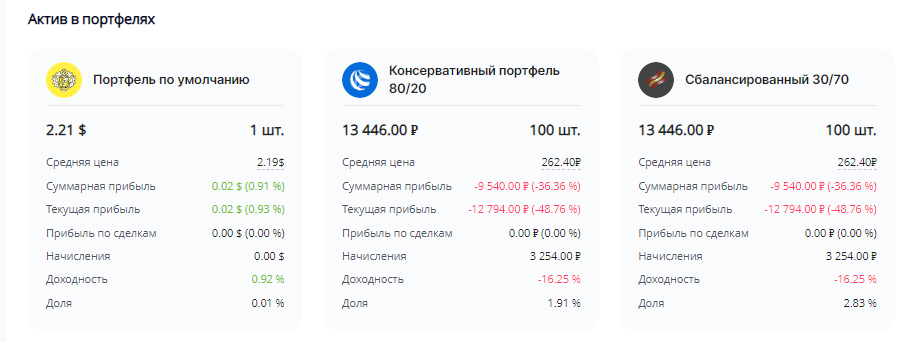 Пользователям без подписки видны лишь общие показатели — описание, стратегия и динамика. Количество закрытых портфелей не ограничено, что дает возможность демонстрировать разные стратегии и использовать разные активы.