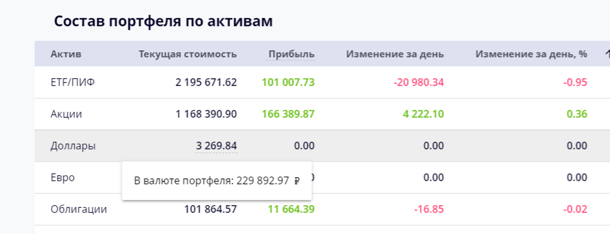 В таблицу активов добавили оценку денежного остатка в валюте портфеля.